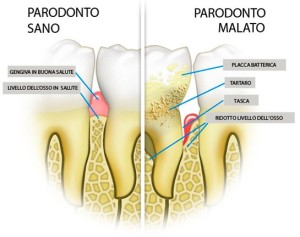 È una malattia infiammatoria provocata dai microrganismi della placca batterica. È indicata come malattia parodontale (o parodontopatia) perché colpisce il parodonto, cioè l’insieme di strutture che circondano il dente e lo mantengono saldamente attaccato all’osso. Se non curata, l’infezione procede in profondità: la gengiva si allontana dal dente, creando tasche in cui i batteri si accumulano; il tessuto osseo viene distrutto; i denti perdono supporto e diventano mobili.